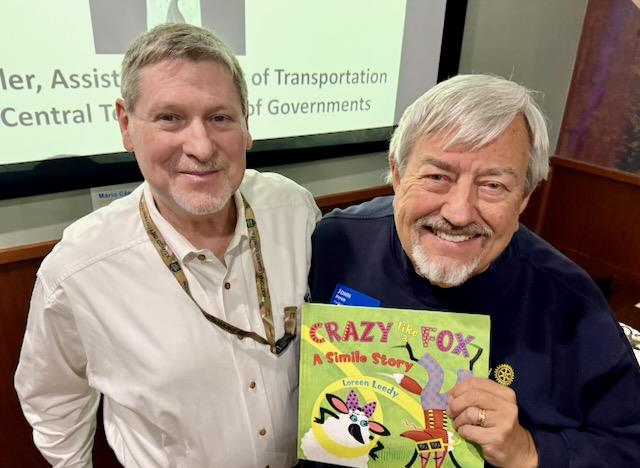 As is our practice, we gave a children's library book to MISD as his honorarium. Immediate past president Don Ellis has been Dan's friend for over 30 years, with a shared interest in sport fishing.